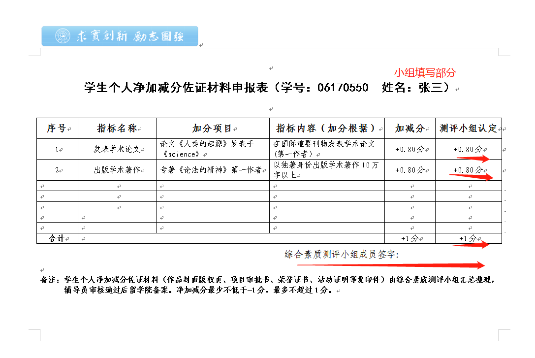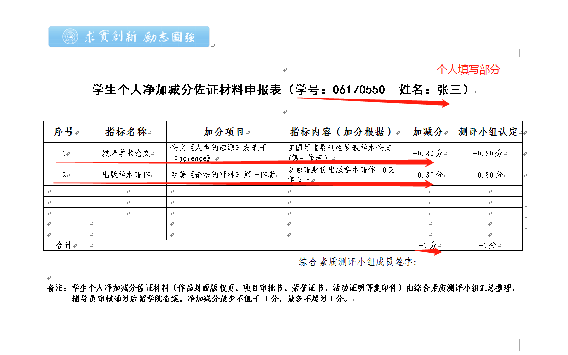 必赢线路检测3003综合素质测评学生个人净加减分佐证材料申报表