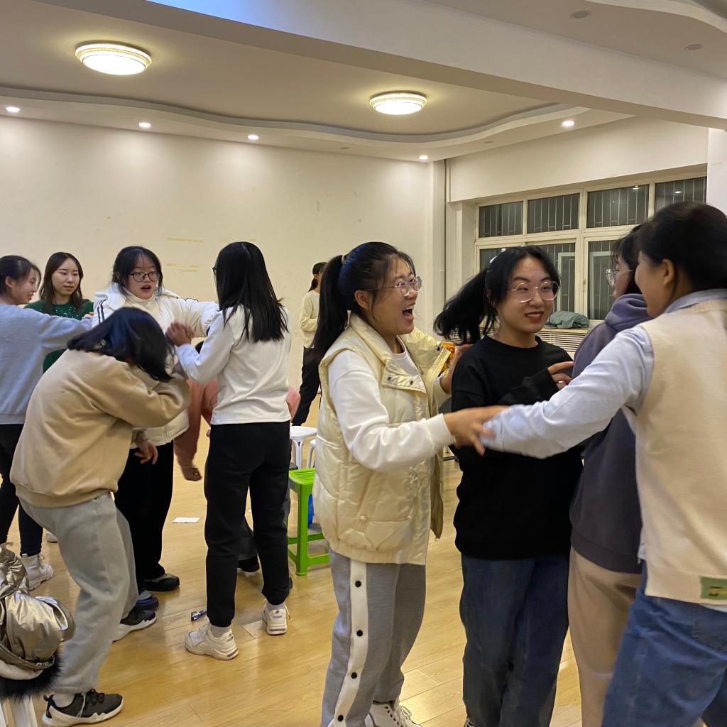 在热烈的氛围中,活动正式开始。第一个环节是热身小游戏,分别是“阿水的故事”、“松鼠和大树”和“定时炸弹”。在第一个游戏“阿水的故事”中,通过简单的听指令抓手指游戏,大家的情绪瞬间被调动起来,同学们都迅速进入活动氛围。而在“松鼠和大树”的游戏中,同学们被打乱和重新组合,在一片欢声笑语中熟悉了彼此。