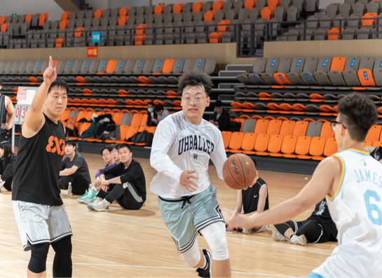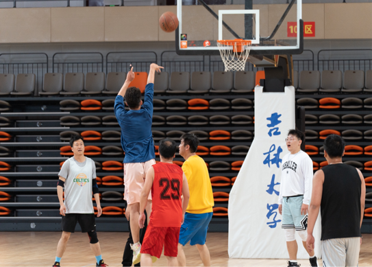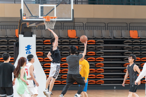 此次篮球比赛共有教师代表队和学生代表队两支队伍参赛,采取1V1赛制,同学们自发地前往比赛场地为球员们加油助威。赛前,双方队员都在积极地做着热身活动,他们活动着筋骨,和队友们互相加油打气,热烈的氛围感染着在场的每一个人。随着一声哨响,师生篮球赛正式开始,双方队员迅速进入激烈的角逐状态。