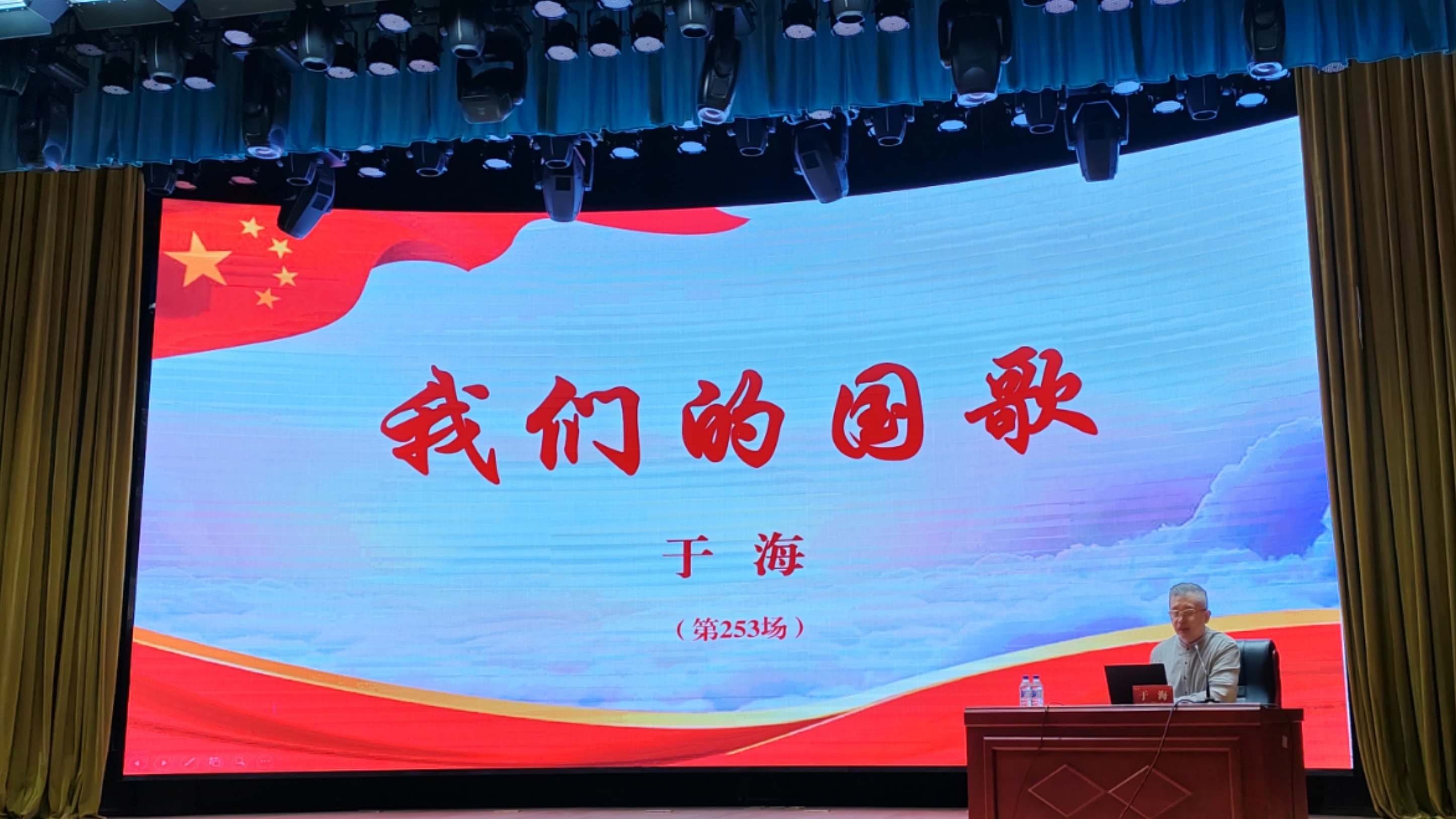 “我们的国歌”专题讲座以国歌的创作历史和艺术演绎为线索,围绕“国歌的概述”“《义勇军进行曲》的发展历程”“国歌崇高神圣、至高无上”“国歌是家国情怀的生动教材”“我们的国歌是世界上最好的国歌”五个部分,深情讲述了国歌背后的故事及于海先生对国歌的认识与体会。