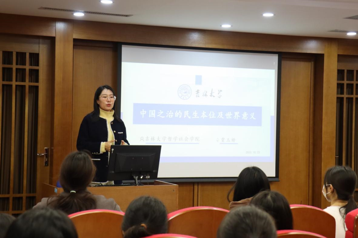 哲学社会学院的贾玉娇教授以“中国之治的民生本位及世界意义”为题,通过客观层面与主观层面两个逻辑,由浅入深,详细地为参训学员们讲解了不同时代背景下世界对“中国之治”的认知态度。通过讲述中国特色社会主义制度和中国的价值观一步步走入国际视野、为世界所认同的过程,贾玉娇教授全面地回答了“中国特色社会主义为什么行,中国式现代化道路为什么能”的问题。最后,贾老师带领同学们深刻理解了“五个认同”,即体质认同、中国世界价值的认同、中国实践理念的认同、实际效用的认同、对中国发展的价值遵循的认同。在国家力量下抚育民生民本,坚持以人民为中心,坚持人民主体地位,全心全意为人民服务。