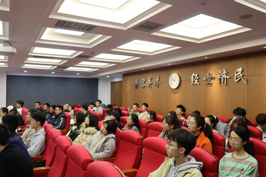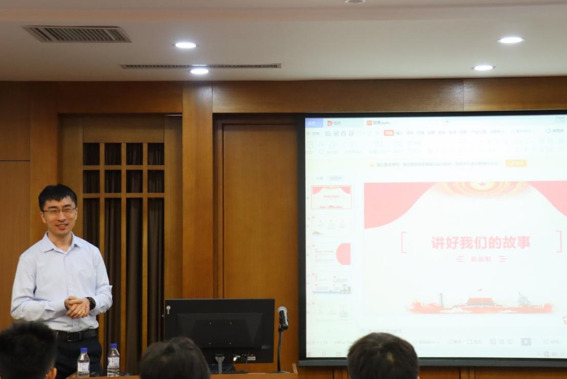 文学院的陈新阳老师以“讲好我们的故事”为题,结合中国共产主义青年团的历史和传播学相关知识,生动地为参训学员们阐释了当前世界局势下,讲好中国故事的重大意义。通过解读10月7日在北京召开的全国宣传思想文化工作会议的有关精神指示,陈新阳老师论证了坚持和加强党对意识形态工作的全面领导的重要性,并教育参训学员们要坚守意识形态底线、坚定“四个自信”。最后陈老师围绕着“明体达用,体用贯通”,“体”指的是本体,“用”指的是实践,通过结合当今时事从多方面讲解意识形态,阐明了理论指导实践的重要性。