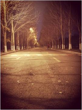 夜幕降临,秋天的吉大已经逐渐冷了下来。地上的落叶,稀松的树枝,无不昭示着这小道是如此的寒冷而凄清。然而,这并不能阻止吉大的情侣们,两颗火热的心是没有距离的。相恋的一对情侣彼此依偎着,感受着彼此的温度。于是,这寒冷的夜也并不显得那么冷了,这便是吉大中的爱的力量。