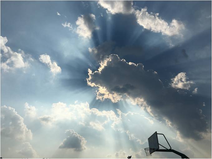 金秋十月,一夜新凉,满目清寒,快意在秋天。此时的树叶微微泛黄,太阳依然散发着耀眼的光芒,阳光穿过树叶,形成一幅优美的图画。在镜头下,太阳光好似组成了一个“火炬”的形状。火炬为我们带来光明,太阳赠予了我们光。也许,这便是一种无私的爱。
