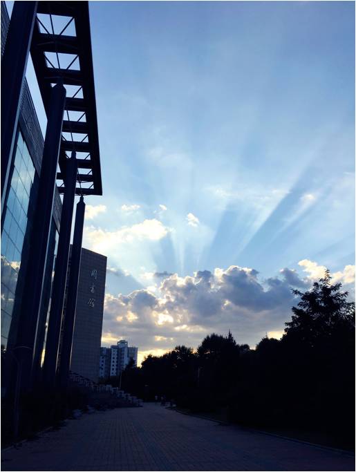 傍晚的图书馆,夏日傍晚走过图书馆,天仍很蓝。白云却挡住了背后日渐下落的阳,阳光怎么会善罢甘休,只执拗地拼命突出重围。看着眼前的这一切,图书馆也只是静静的,不说话。