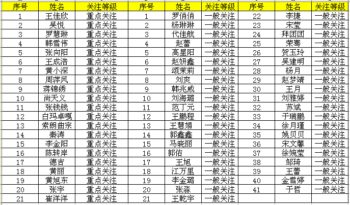 以上名单公示期截止到3月31日上午9点。公示期间,请同学们登录系统,对学院的认定结果,如无异议,点击“确认”;如有异议,学生可选择“申请复议”,下载并填写“关注对象认定复议申请表”,上交学生工作办公室(东荣大厦A0113室)。学院将对申请复议学生情况进行重新核实,并提交复议处理结果。