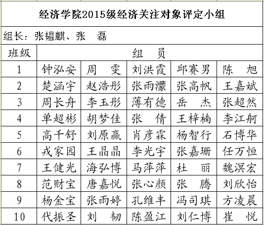 必赢线路检测30032015级经济关注对象评定小组名单公示