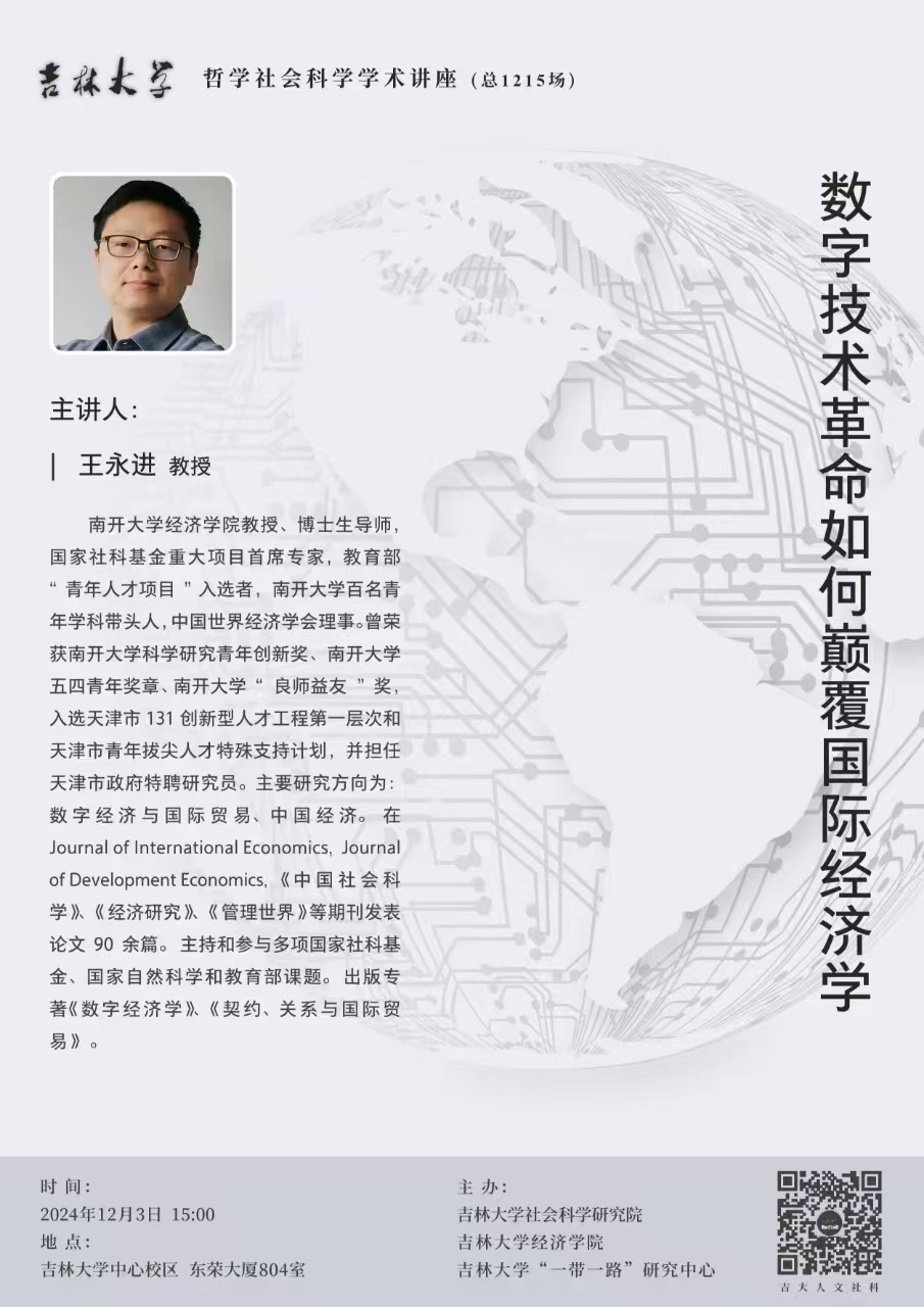 讲座题目:数字技术革命如何巅覆国际经济学