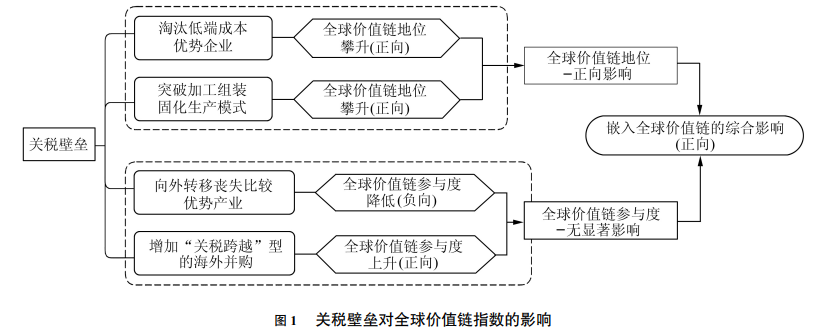 根据经验研究结果得出关税壁垒对中国嵌入全球价值链各项指标具有以下影响:有效提高了中国各产业上游度指数并减少了下游度指数,从而引致价值链位置相对更快地攀升;对中国的全球价值链参与度没有显著的抑制作用,且对中国嵌入全球价值链的综合影响是正向的;对中国嵌入全球价值链的影响具有行业异质性。尽管关税壁垒对中国嵌入全球价值链综合影响的正向作用较为微弱,但我们仍然可以此为契机,淘汰相对落后的产能、净化市场外部环境和倒逼中低技术行业进行产业升级。因此,在面对当前中美贸易争端时,我们应以外部压力为契机和动力,加速促进国内体制机制改革,坚持扩大对外开放,全面融入全球价值链,从而实现中国制造业全球价值链地位的攀升、促进中国经济向高质量发展的转变和推动世界经济贸易向稳定增长的方向发展。